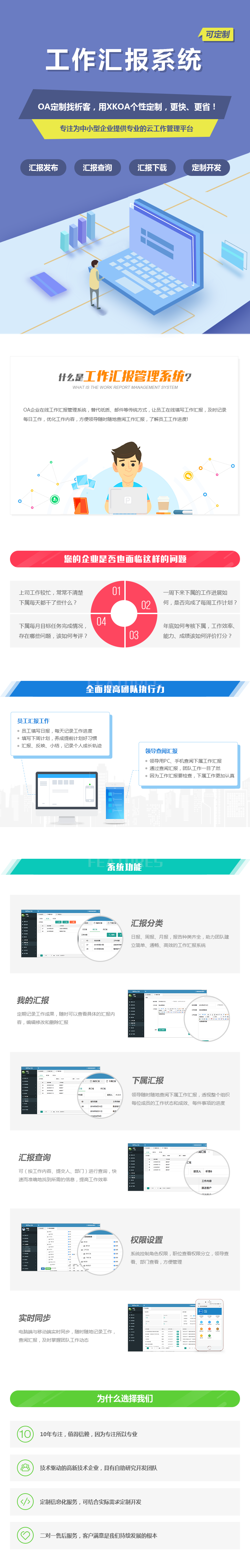 OA企业在线工作汇报管理系统,替代纸质、邮件等传统方式,让员工在线填写工作汇报,及时记录每日工作,优化工作内容,方便领导随时随地查阅工作汇报,了解员工工作进度!